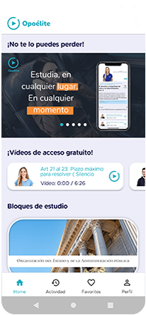 Deja de memorizar PDFs interminables. Con Opoélite, entiendes el temario con cientos de vídeos cortos y practicas con miles de tests para asegurar tu plaza.